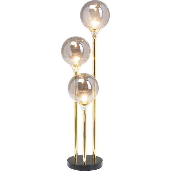 Lampen er perfekt som vinduslampe i hallen eller på sidebordet ved sofaen. Foten i svart marmor, stativ i nikkelbelagt stål med utstillingsfinish og pærene i tonet glass gir lampen et eksklusivt preg