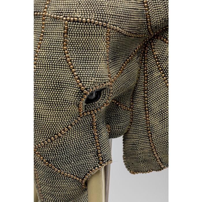 Skulpturen tilhører en rekke innredningsobjekter med dyr fra savannen, inkludert neshorn og antilope – alt håndlaget i denne perle-strukturen