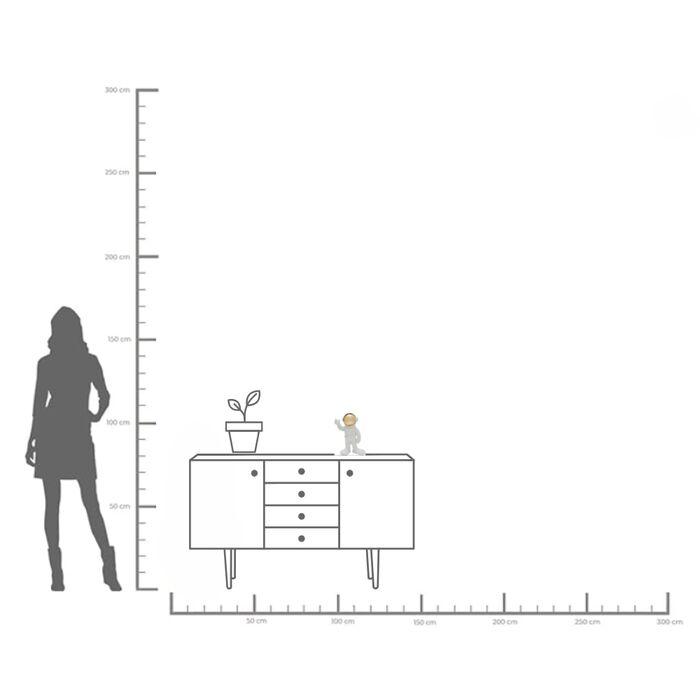 Gi ditt hjem en futuristisk og moderne følelse med denne fantastiske dekorfiguren av en hvit astronaut! Med sitt gullfargede visir og posisjon som tar deg velkommen, vil denne figuren garantert tiltrekke seg oppmerksomhet fra dine gjester. Med en størrelse på 27 x 21 x 12.5 centimeters (H/W/D), passer denne figuren perfekt på et bord, hylle eller i et hjørne av rommet.