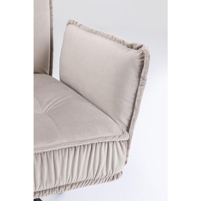 Den er kledd i kosete fløyelsutseende stoff og putekombinasjon har en elegant effekt.