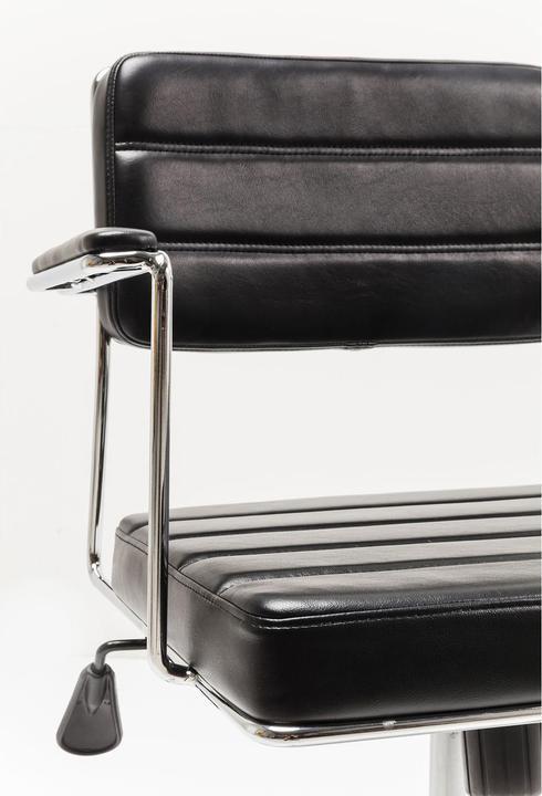 Dottore Black kontorstol, 360 ° roterbar Ramme: forkrommet stål/aluminium. Trekk: 100% polyuretanbelegg Polstring: Polyuretan Sete: finertømmer Hjul: 5, Polyuretan 46 – 55 cm justerbar i høyde, gass trykkfjær 78 x 44 x 50 cm (H/B/D)