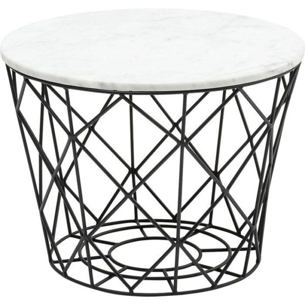 Et unikt sett. Settet med tre sidebord er utstyrt med en fin ramme av slanke, stilig anordnede stålstenger.
